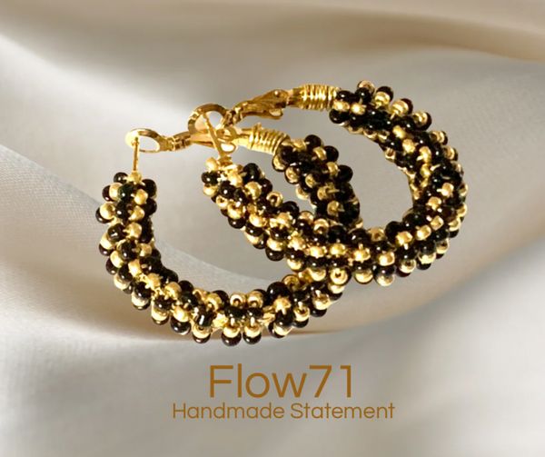 De combinatie van RVS goldplated creolen (3 cm) en fijne Miyuki kraaltjes zorgt voor een elegante, feestelijke uitstraling die toch subtiel blijft.